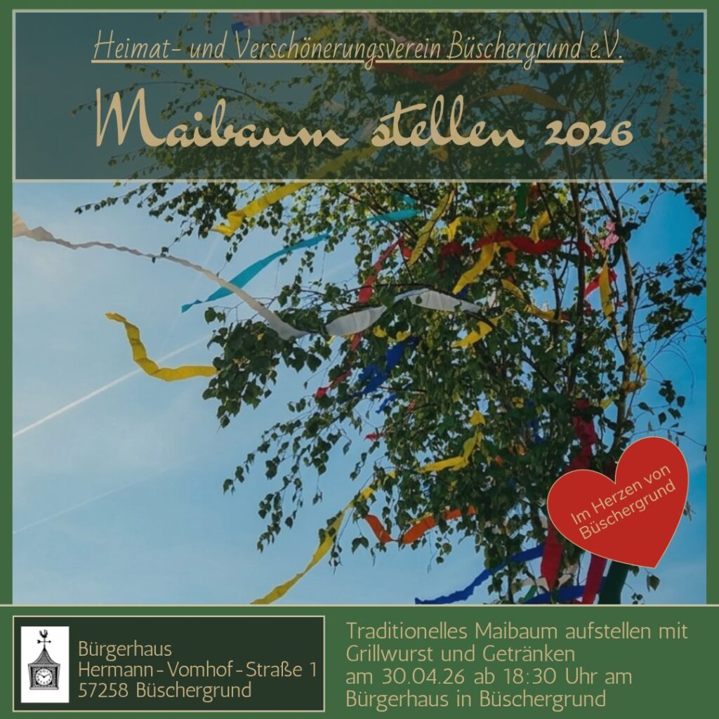 Veröffentlicht am 30. April 2022 Der Heimat- und Verschönerungsverein Büschergrund e.V. wünscht allen im Dorf einen schönen 1. Mai.